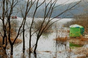 | 낚싯대는 없고 텐트만 자리잡고 있습니다. |