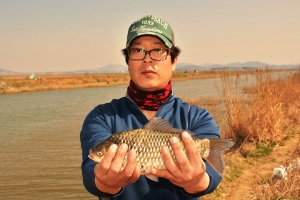 마릿수를 낚은 올가님이 허리급 붕어를 들어 기념샷 날립니다~ |