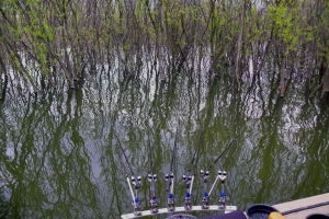 수몰나무 속에 좌대가 자리잡고 있습니다. |