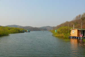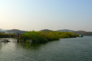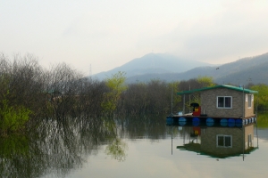 | 수몰나무 속에 좌대가 자리잡고 있습니다. |
