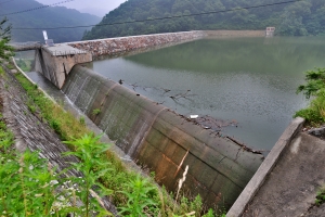 | 완전 만수로 무너미아래로 물이 넘쳐 흐릅니다. |