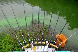 좌측 2대는 수심 70센티, 우측대들은 2미터에서 3미터권으로 붕어들이 물골을 타고 들어오는걸 노렸습니다. |