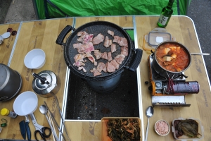 | 열심히 우리를 위해 아침을 준비해주시는 쥴리님~~ 이때 안먹었음 철수할 때 비맞을뻔!~~ |
