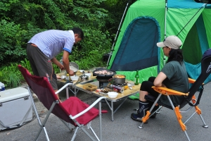열심히 우리를 위해 아침을 준비해주시는 쥴리님~~ 이때 안먹었음 철수할 때 비맞을뻔!~~ |