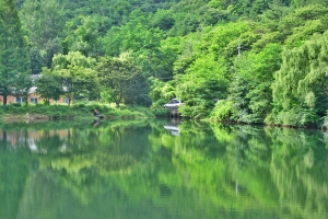 | 최상류권에 포진하신 붕타령님의 포인트와 철수준비를 하시는 모습입니다. |
