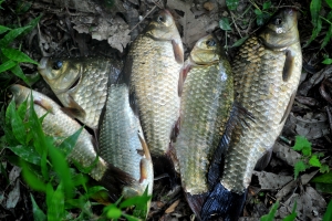 필자의 조과~ 3미터가 넘는 수심에서 나오는 계곡지의 붕어 손맛은 피아노 소리가 납니다.~^^ |