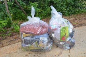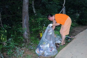 | 새벽운동 하시는 아주머니께 비닐을 얻어 주변 쓰레기를 200L 정도 주워서 담아 큰 길가에 놓아두었습니다.^^* |