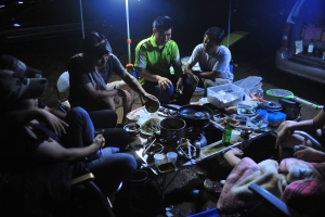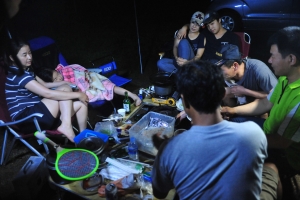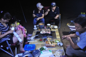 | 각자 준비해 주신 맛난 음식으로 타프아래에서 빗소리를 들으며 서로 즐거운 대화의 시간을 갖습니다. |