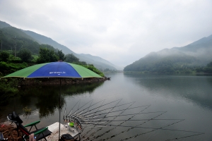 저수지의 그림은 백점!!~ 큰녀석들도 라이징을 했으나... 물이 너무 맑아 돌고기의 개체수가 너무 많습니다. |