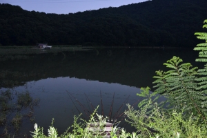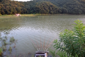 | 상류에서 바라본 반월지 지난밤에 물골에서 마릿수 붕어가 나왔습니다. |