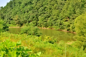 | 진입이 어려워 쥴리님이 필자가족을 입구에서 기다리다 구비구비 한참을 들어가 작은 소류지가 나옵니다. |