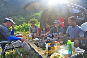 | 모두들 텐트를 말리며 지난밤 조과를 얘기하며 맛난 아침을 먹습니다. |