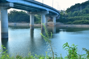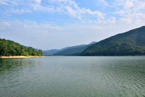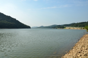 산수지 상류에서 바라본 전채 풍경입니다. |