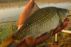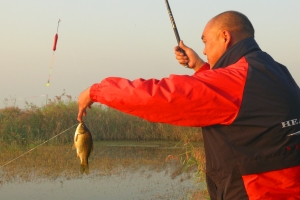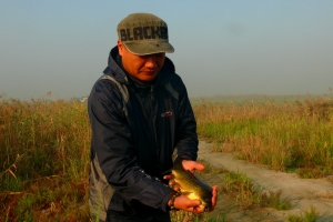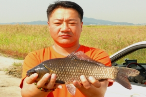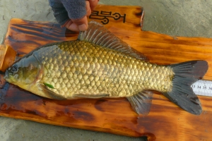 | 제법 굵은 씨알의 붕어를 걸어 내었습니. |