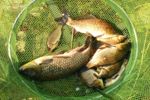제법 굵은 씨알의 붕어를 걸어 내었습니. |