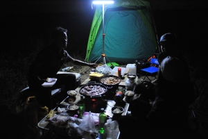 저녁내내 잔챙이 두들겨 맞다가 좀 늦게 저녁을 모두 함께 합니다. 9시쯤 되면 모기가 줄어 듭니다. |