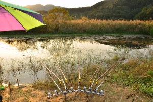 | 이렇게 세워논 찌에서 붕어가 낚입니다. |