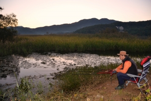 미수조사님도 채비를 하면서 눈은 찌에서 떼지를 못합니다. |