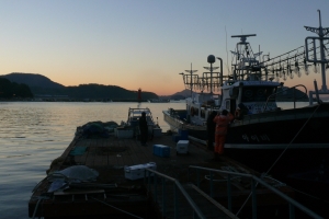 전날 출항했던 배가 도착하자 바로 자리를 잡기 위해 움직입니다 |