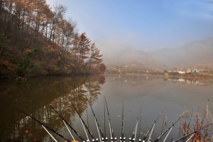 | 물에 떨어진 만추의 낙옆사이로 차분히 겨울을 기다리는 찌가 부드럽게 올라와주기를 기다려 봅니다. |