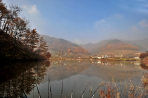 다 떨어져버리고 몇개 남지 않은 나뭇잎이 소류지를 더 쓸쓸하게 보이게 합니다. |