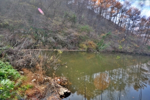 | 다 떨어져버리고 몇개 남지 않은 나뭇잎이 소류지를 더 쓸쓸하게 보이게 합니다. |
