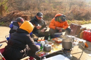 | 추위를 덜기위해 아침을 준비했습니다. |