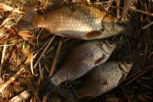 | 수초치기를 해 보니 붕어가 나옵니다. |