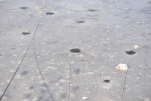 | 다시 나와 밖에서 얼음구멍에 넣어 입질을 기다려 보는 어설픈 낚시밖에 방법이 없네요 |