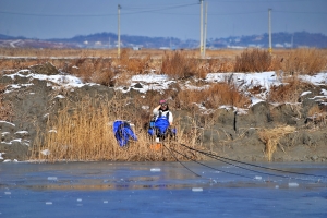 | 공식적인 올해 첫 얼음낚시 입니다. 얼음을 타고 들어가 구멍을 뚫고 다시 밖으로 나왔지만~^^ |