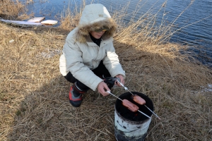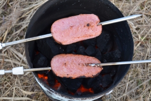 | 천우아빠가 준비해온 소세지를 굽네요 |