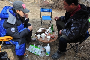 | 눈맞으며 낚시하니 넘 좋다고 아침내내 좋아합니다. 역시 분위기에 약한것이 녀자라~^^;; |