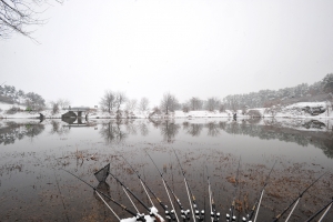 | 아침을 먹고 나니 또 다시 함박눈이 내리기 시작합니다. 눈을 맞으며 물낚시를 하니 참 좋더군요~ |