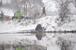 아침을 먹고 나니 또 다시 함박눈이 내리기 시작합니다. 눈을 맞으며 물낚시를 하니 참 좋더군요~ |