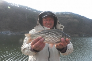 | 아침나절 필자도 턱걸이급 몸짱붕어를 잡아냅니다. |