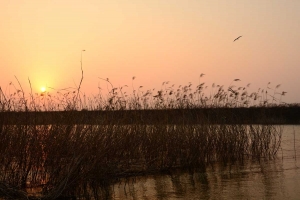 늦은 오후인데도 갈대벽을 넘어 너울이 심해요. |