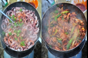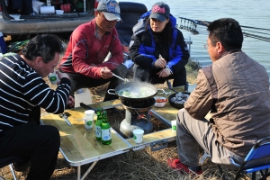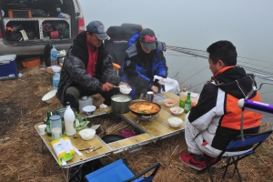| 시원한 김치찌개로 모두들 아침식사를 합니다. 일요일 아침 물가에서 먹는 맛은 정말 맛납니다. |