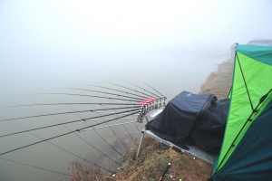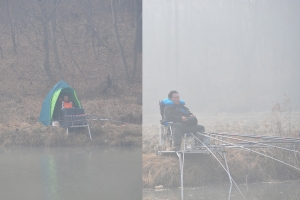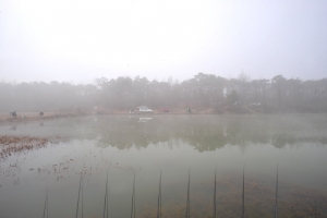| 서서히 안개가 걷혀 갑니다. 벌써 9시가 넘어갑니다. 하지만 아무도 붕어 얼굴은 못봅니다. |