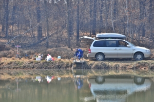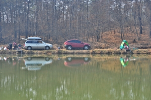 서서히 안개가 걷혀 갑니다. 벌써 9시가 넘어갑니다. 하지만 아무도 붕어 얼굴은 못봅니다. |