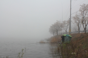 | 새벽에 물안개가 밀려와서 캐미불이 보이지 않을 정도입니다. |