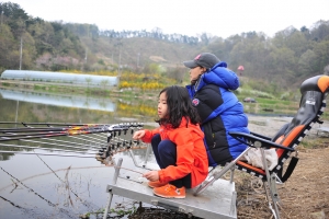 | 올 첫 출조를 나온 민서가 귀엽다고 만져 본다네요^^; |