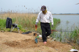 | 이론박사님 텐트 설치할 자리를 다듬고 있어요. |