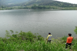 저수지 한복판에서.. 이런 닝기리..... - -;;