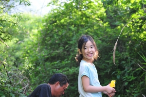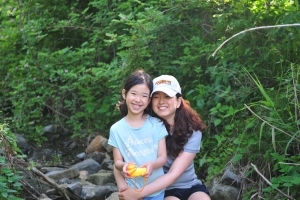 쥴리님이 가뭄이라 작은 계곡물이 내려오지만 이리저리 파내서 민서가 놀 수 있게 해줍니다. |