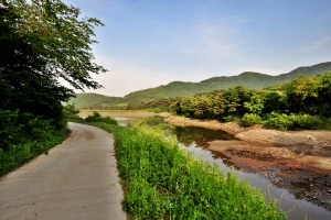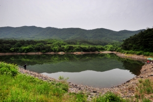 차가 다니지 않는 조용한 소류지의 길과 저수지로 들어가는 물골이 예상이 됩니다. |