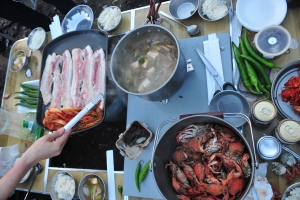 | 3시간을 달려 도착하자 마자 아점을 먹은 탓에 맥주와 맛난 음식으로 즐거운 시간을 시작합니다. |