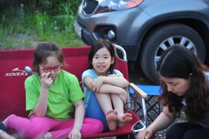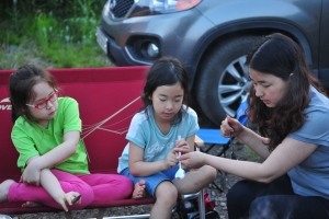 | 동갑내기 친구사이인 서진이와 민서~ 오늘은 필자의 텐트에서 함께 밤을 보내기로 합니다. |