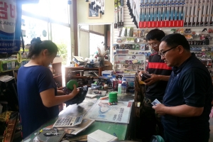청북 대물낚시점에서 지렁이와 소품을 구입합니다. |