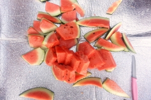 시원한 수박을 먹고 아침을 먹으러 출발합니다. |