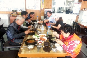| 시원한 수박을 먹고 아침을 먹으러 출발합니다. |